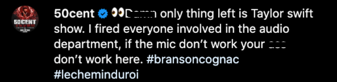 As we reported a few days ago, 50 may be facing a felony charge for losing his temper due to the audio issues that happened at his own L.A. concert. While the musician says he fired his audio team following the blunder, he has reportedly not been cleared of the criminal charges filed against him. While the rap star did not address the potential lawsuit in his recent post, his lawyer reportedly released a statement shortly after the incident happened, stating:
