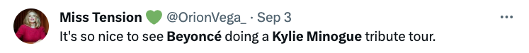 Beyoncé pays homage to Kylie Minogue in new clip from the renaissance tour ?pic.twitter.com/cayq893JFO