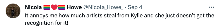 “It annoys me how much artists steal from Kylie and she just doesn’t get the recognition for it!”