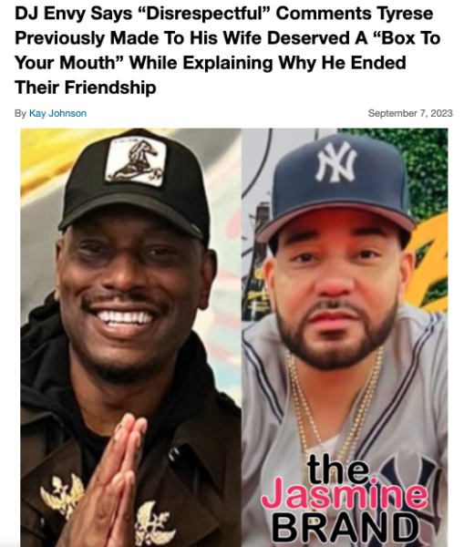 As we covered in the original story, Tyrese sat down with Charlamagne and Envy and opened up the conversation about their quiet long standing beef, seemingly in efforts to offer his perspective. The “Fast & Furious” star expressed his disappointment that Envy had never checked on him while going through his divorce from ex wife Samantha Gibson. Additionally, he says that while Charlamagne did conduct an interview with him during that time at his request, he felt the best selling author didn’t make a genuine effort to see how he was doing emotionally. Instead, he says the two radio hosts just made jokes about his situation on air, damaging his view of them.