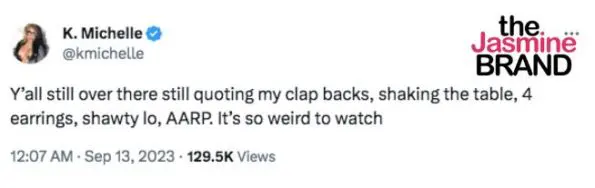 “Y’all still over there still quoting my clap backs, shaking the table, 4 earrings, shawty lo, AARP. It’s so weird to watch.”