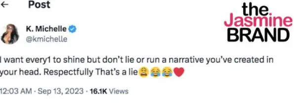 K. Michelle also expressed that she wants “everyone to shine” but she’s not here for the lies.