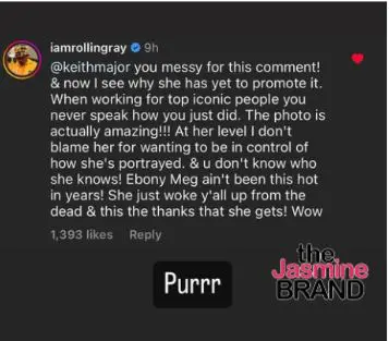 “@keithmajor you messy for this comment! & now I see why she has yet to promote it. When working for top iconic people you never speak how you just did. The photo is actually amazing!!! At her level I don’t blame her for wanting to be in control of how she’s portrayed. & you don’t know who she knows! Ebony [Mag] ain’t been this hot in years! She just woke ya’ll up from the dead & this is the thanks she gets! Wow.”