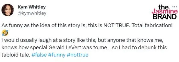 “As funny as the idea of this story is, this is NOT TRUE. Total fabrication! I would usually laugh at a story like this, but anyone that knows me, knows how special Gerald LeVert was to me …so I had to debunk this tabloid tale. #false #funny #nottrue.”