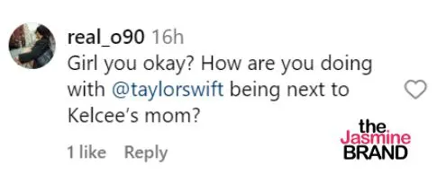 “Girl you okay? How are you doing with @taylorswift being next to Kelcee’s mom?”