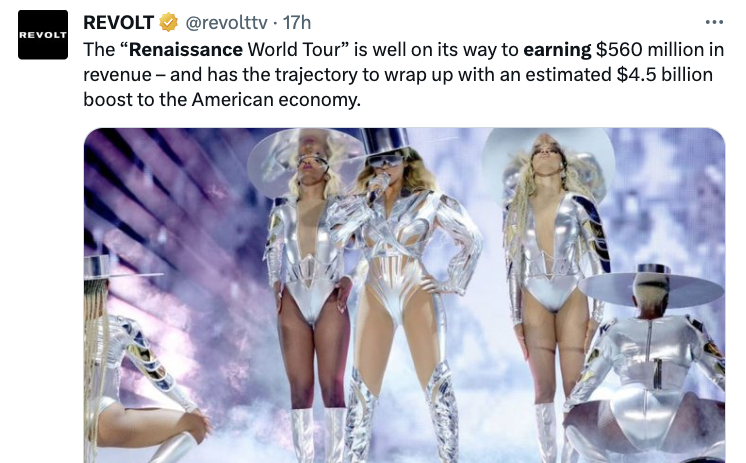 It’s no surprise with the success of the tour that AMC partnered with Beyoncé to release the concert film in theaters. With several movie delays due to the Hollywood strike, the fall movie season stood to take a huge hit for theaters as many movies slated to be released between October – December have been rescheduled for 2024 dates. However, AMC CEO Adam Aron reportedly was able to think smart and quick on how to offset some of the financial loss, inking deals with music super stars such as Taylor and Beyoncé.