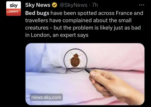 Bed bugs seen crawling over seats on Paris trains and buses as France battles a bed bug invasion. pic.twitter.com/XnwcrQgVax