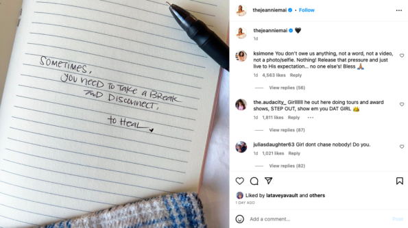 Jeannie’s subtle message was met with support from followers who expressed their empathy in the comment section.