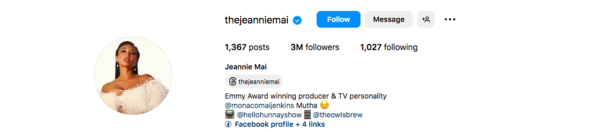Initially, reports claimed Jeannie was devastated the “Put On” artist wanted to end their marriage and was doing what she could to repair the damage. However, it now looks like she’s ready to accept the breakup. Internet users noticed that Jeannie finally removed her ex’s last name, Jenkins, from her IG bio over the weekend. After getting married she changed her name on the platform to “Jeannie Mai Jenkins.”