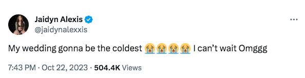 “My wedding gonna be the coldest. I can’t wait Omggg.”
