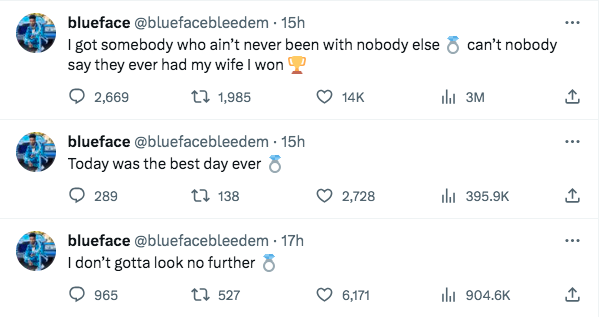 When speaking of the new chapter, Blueface gushed on X (formerly Twitter) in a series of posts,