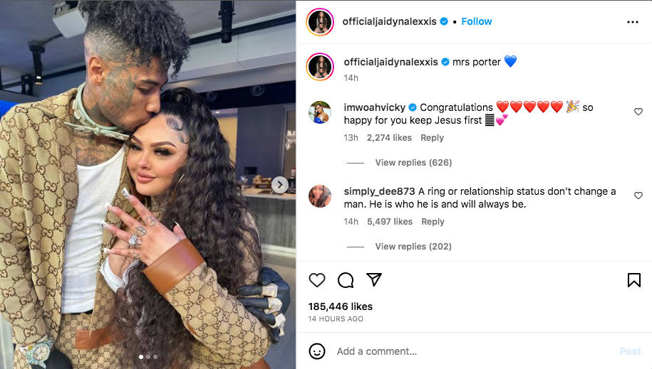 Prior to the engagement, 26-year-old Blueface took to his Instagram Story to express his sentiments on the heels of the life-changing event. He said,