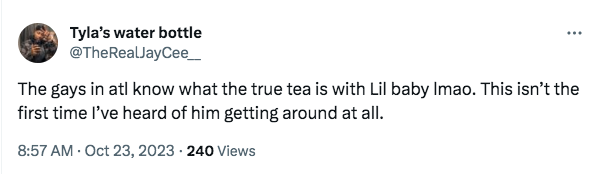 “The gays in atl know what the true tea is with Lil baby lmao. This isn’t the first time I’ve heard of him getting around at all.”