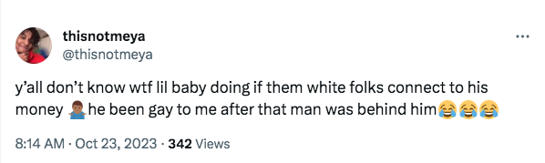 “Y’all don’t know wtf lil baby doing if them white folks [connected] to his money. He been gay to me after that man was behind him.”