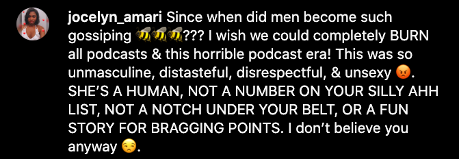 “Lol y’all eating me tf up huh…Whilst I can appreciate & understand everyone’s view on the podcast , I disagree . I understand the manner in which the question came off distasteful & I tried to answer in a manner that would still be funny , & salacious but still respectful , clearly I failed, although I stated certain things to paint a clearer picture”