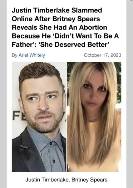 Last week, it was revealed in the “Toxic” singer’s memoir that she terminated her first pregnancy because Justin Timberlake didn’t want to be a father at the time.
