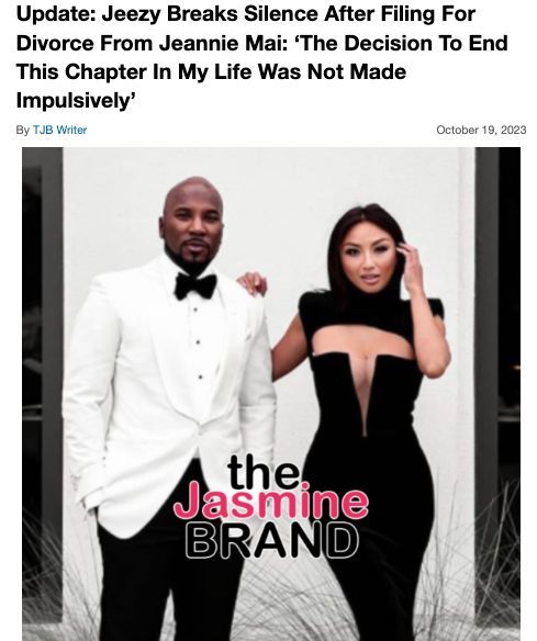 Sources close to the couple have said that a number of discrepancies the two had about marriage and raising their daughter ultimately ended the relationship. While neither entertainer has specifically addressed what caused the split, both Jeannie and Jeezy have spoken publicly about the divorce. Releasing a statement to the press, the “Put On” rapper stated: