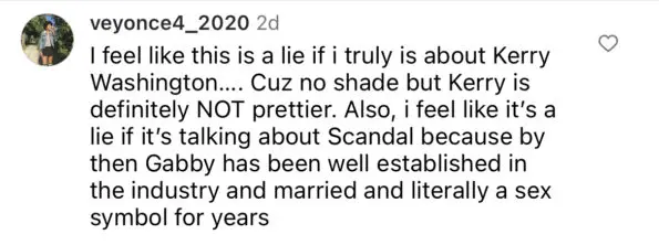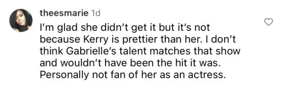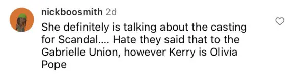Although she didn’t mention the name of the project or the name of the competing actress, many fans began to speculate Gabrielle Union was referring to Kerry Washington’s lead role in the ABC series “Scandal.”