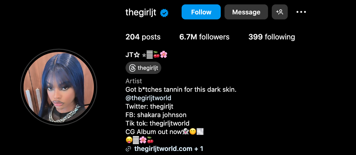 Additionally, the rapper once again adjusted the name in her bio. As we covered earlier this month, the two were speculated to have secretly tied the knot after JT changed her last name to match her boo’s. Amid break-up rumors, however, it seems she’s changed it back.