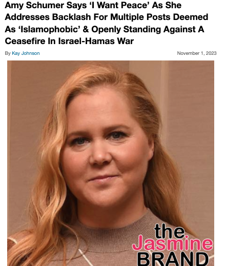 Morris‘ walk back of his comment on Amy Schumer’s post comes just a day after the comedian drew massive backlash for her radical stance on the Israel-Hamas conflict. As previously reported, the movie actress trended online yesterday (November 1st) as social media users slammed her for speaking out against a cease-fire on the Gaza strip, which could potentially save thousands of lives, and making other remarks that many felt were “Islamophobic.”