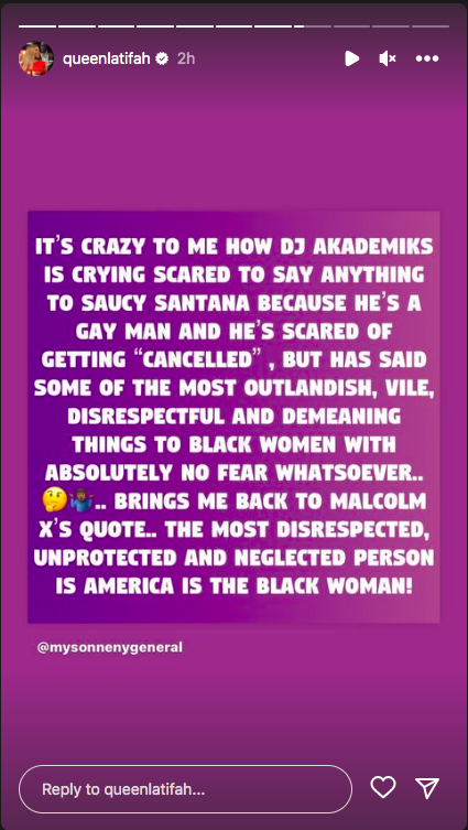 Do you agree with Queen Latifah’s reshare about DJ Akademiks? Let us know in the comments below!