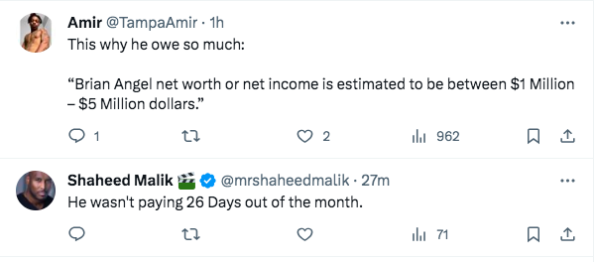 One person on X seemingly shocked by Brian (allegedly) being behind on his child support payments said,