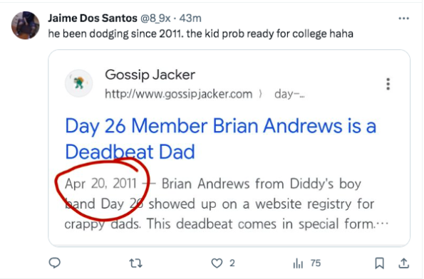 “Yo that’s Brian “Angel” Andrew’s from Diddy making the band Day 26. Child support be a nasty business”