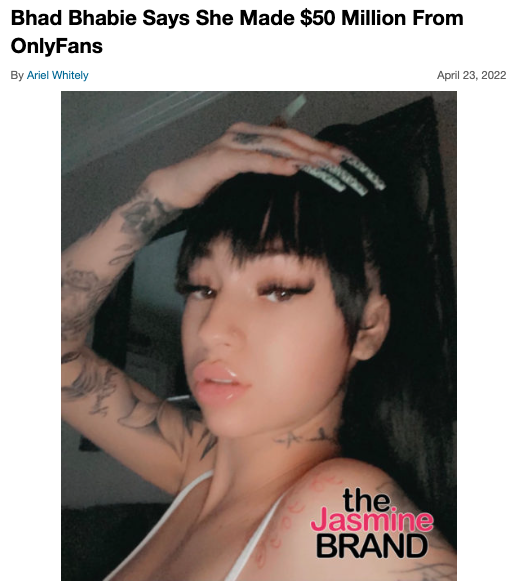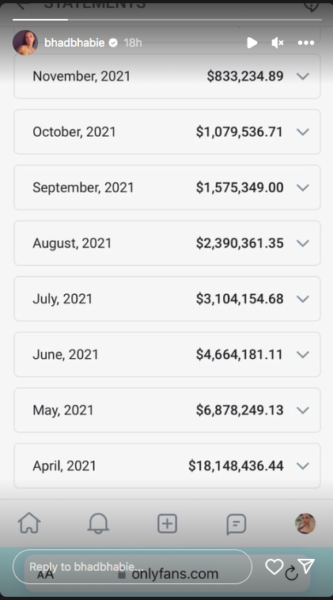 With the shared receipts stopping after November, it’s safe to assume Bhad Bhabie continued to mark high earnings through April 2022. As we previously covered, the entertainer alleged she earned $50 million last year on the platform which, with her recent admission, seems highly likely.