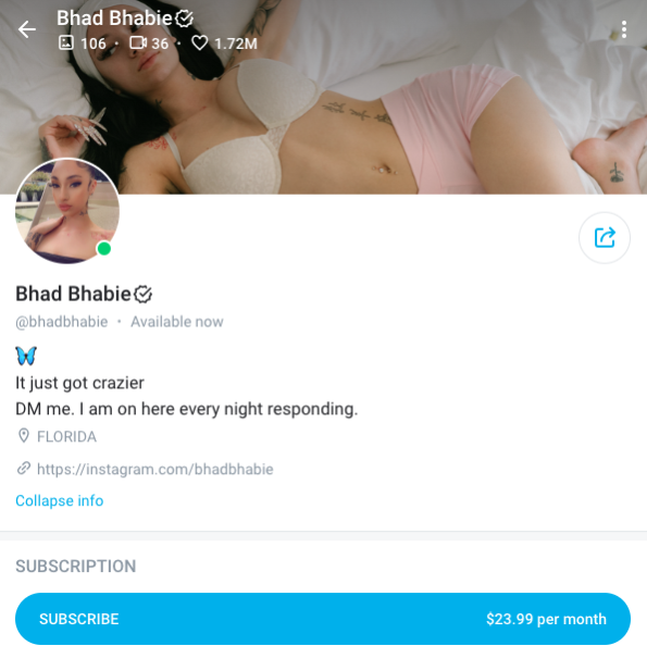 Rapper-turned-adult-content-creator Bhad Bhabie appears to do tremendously well with her OnlyFans account.
