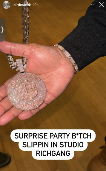 Though it’s unclear from the video’s view if the thief was successful in getting the chain, the “Stuntin’ Like My Daddy” artist confirmed as much in a subsequent post. Birdman uploaded a picture of the bling to his instagram story following the incident, writing the caption: