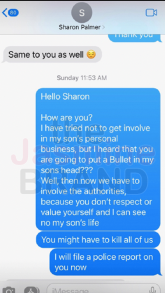 The alleged threat prompted Darius’ mother to text Sharon Palmer with a threat of her own. She reportedly wrote,