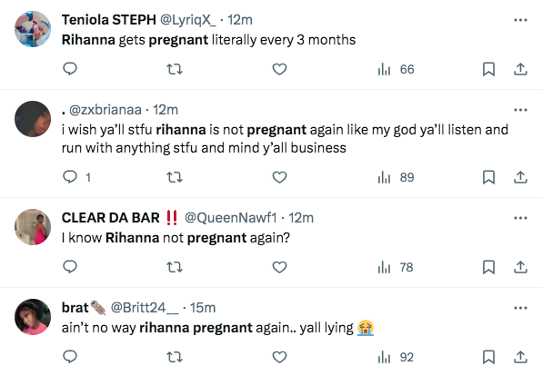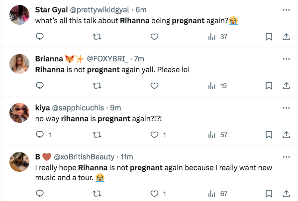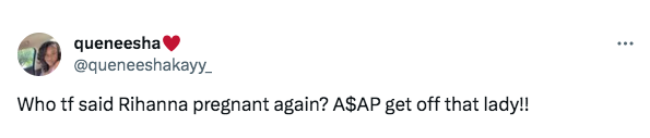 “Who tf said Rihanna was pregnant again? A$AP get off that lady!!”