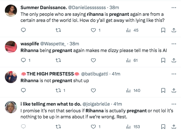 While it’s been said that it all started with a semi-viral “deepfake” video of “Rihanna” announcing her pregnancy, the chatter (seemingly) heightened on X, as photos from her past pregnancies have swirled in confusion.