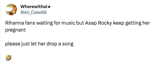 “Rihanna fans waiting for music but Asap Rocky keep getting her pregnant. Please just let her drop a song.”