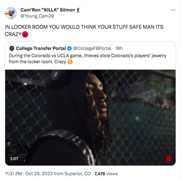During the Colorado vs UCLA game, thieves stole Colorado’s players’ jewelry from the locker room. Crazy ? pic.twitter.com/8mTeDab9zA