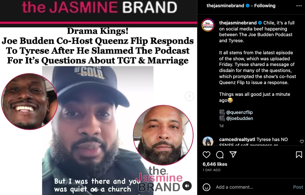 It seems his post and subsequent comments offended one of the show’s co-hosts Queenz Flip, who it seems Tyrese directly addressed in one of his rants. Flip then took to his own social media to address the situation, stating: