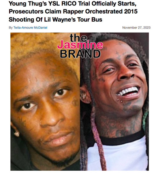 As previously reported, Thug’s high-profile RICO trial kicked off yesterday (Nov. 27) with opening statements from prosecutors. They accused Thug of being the mastermind behind the alleged YSL gang. Prosecutors also claimed that YSL members were responsible for a string of crimes in the Atlanta area, including a 2015 shooting of Lil Wayne’s tour bus.