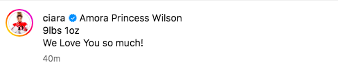 Ciara’s husband, NFL player Russell Wilson, commented under the adorable picture “Amora!!!”