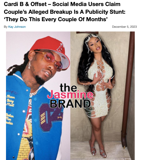 While Cardi says she personally doesn’t believe the rumors are true, she also claims she doesn’t care to find out as she’s single. Offset has not yet spoken publicly about his split from Cardi at this time.