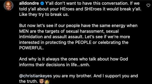 Whoever Keyes is referring to, it seems the actor will get tons of support even when his whole truth is revealed. Several celebrities such as reality star’s Claudia Jordan and Tami Roman, as well as actors such as Yvette Nicole Brown and Dondre T. Whitfield took to Keyes’ comments section with words of encouragement after he posted his live admission.