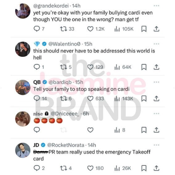 According to Offset, it seems some of Cardi’s fans opted to speak on Takeoff’s death in attempt to wound him. If you recall, the third Migos member, real name Kirsnick Khari Ball, was tragically killed in a shooting while visiting Houston, Texas last year. He was only 28-year-old at his time of passing.