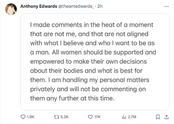 In a statement made to X (formerly known as Twitter), Edwards seemingly took accountability for his actions. The All-Star guard said,
