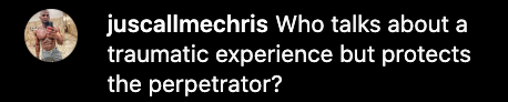 “This is from an interview I did with @atlblackstar a little while back. Maybe it’ll be a little easier to understand why it was difficult to speak up about it, difficult to find the courage. These powerful people target people with traumatic childhoods, and use that to bond with them and earn their trust, then they try their “attempts”…”