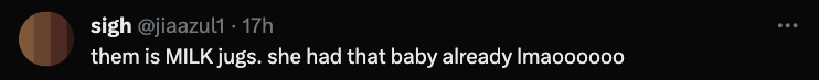 “them is MILK jugs. she had that baby already lmaoooooo”