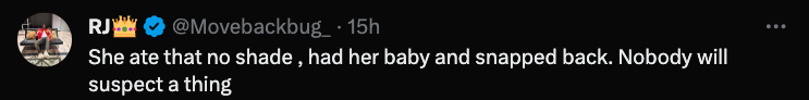 Others opted to focus on the entertainer’s breast, claiming that Bailey’s chest area looked as though she’s been breastfeeding. One user wrote: