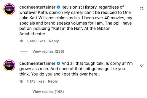 “Revisionist History, regardless of whatever Katts opinion My career can’t be reduced to One Joke Katt Williams claims as his. I been over 40 movies, my specials and brand speaks volumes for I am. The ppl I have put on including “Katt in the Hat”. At the Gibson Amphitheater”