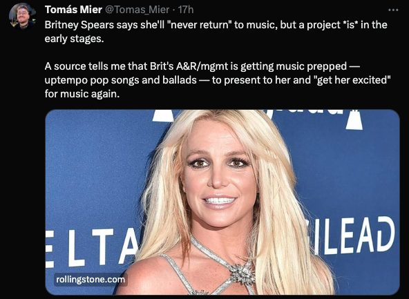 It’s clear, however, that Spears has no intention of returning as a recording artist anytime soon. Back in 2016, the songstress released her ninth and last studio album “Glory,” which became critically acclaimed and debuted at #3 on the Billboard 200 Albums chart. Since her controversial conservatorship ended in 2021, the Grammy winner has released two new songs, a record with Elton John titled “Hold Me Closer” (2022) as well as a collaborative track with Will.I.Am. titled “Mind Your Business” (2022).