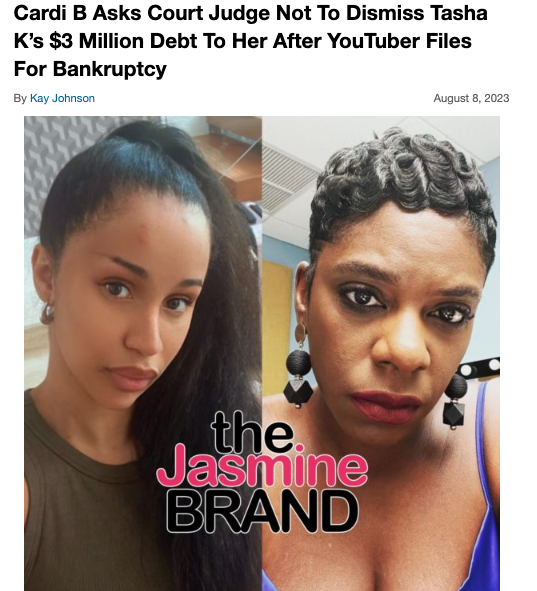 Reportedly, Hart’s legal team claims the media company is owned by Tasha’s husband and that the entity is “responsible for content [Tasha] publishes.” Additionally, they argue that Yelen was only established as a “successor entity to Kebe Studios,” the media company Tasha owned, prior to her losing a lawsuit against Cardi B, and accused the internet star of using the company to avoid further “financial liability,” If you recall, Kebe Studios went into financial bankruptcy after the “Bongos” rapper was awarded a $4 million settlement from her own defamation case against Tasha.