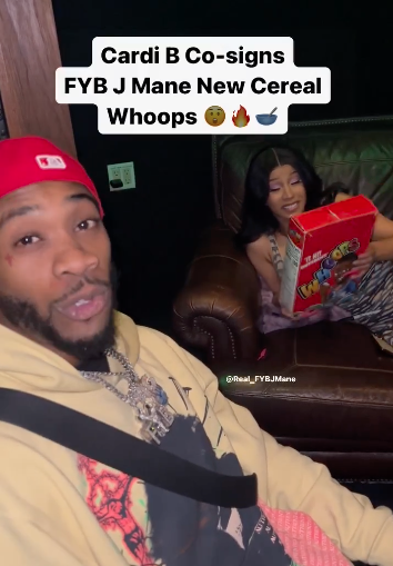 In case you’re unfamiliar, FYB J Mane has been marketing his cereal brand Whoops, and has linked with several celebs to promote the breakfast item. Back in August of last year, he posted a promotional clip of he and Cardi B speaking about the product in what seems to be a studio, which could possibly be the studio session she was referring to when she accused him of lying about being kicked out.