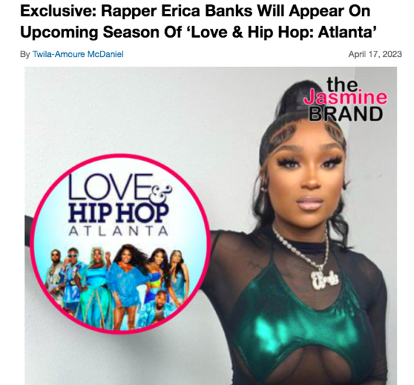 You may recall that theJasmineBrand broke the news in April 2023 that Erica Banks joined the “Love & Hip Hop: Atlanta” cast for season 11. Things seemingly went well for her first time on the series as she was tapped to return for the upcoming season, set to premiere on Jan. 9.